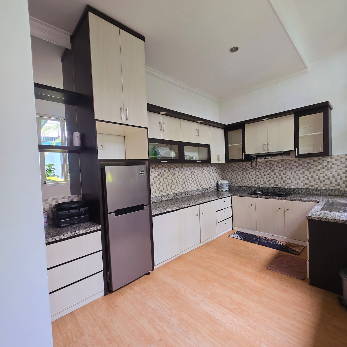 Crea recuerdos en este lugar único y familiar. La villa está ubicada en una urbanización que entiende muy bien la privacidad de los huéspedes y también en un área vigilada las 24 horas, la distancia a los lugares de interés de Jatimaprk 1,2,3 no es más de 3 km.