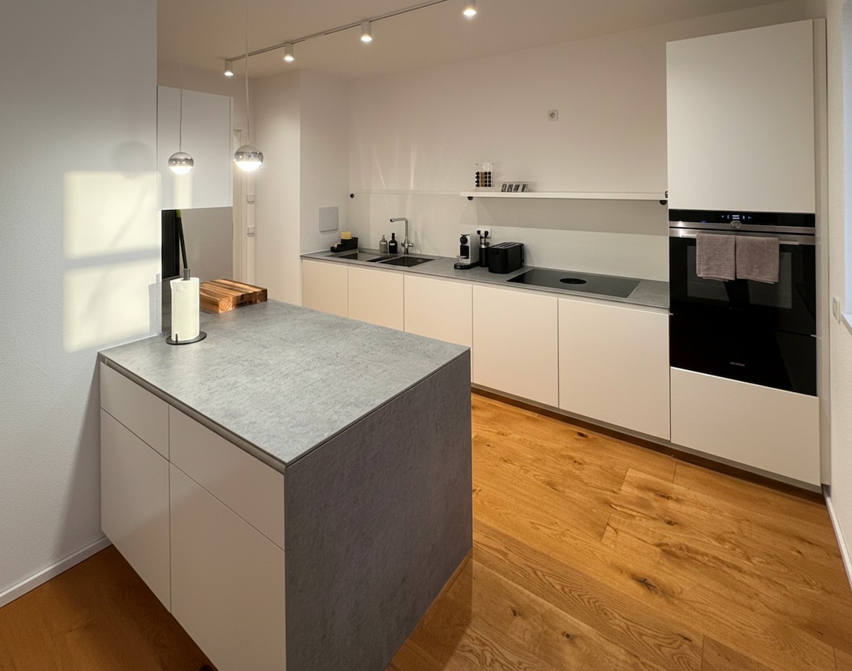Bienvenido a tu exclusivo apartamento de 2 habitaciones con 67 m² en la planta baja, situado en el centro de Augsburgo. Los techos altos, el elegante parqué, un lujoso baño de mármol, el aseo de invitados y una cocina moderna y totalmente equipada crean un ambiente especial. La terraza privada orientada al patio y dos plazas de aparcamiento privado completan la comodidad. Justo en el centro de la ciudad, a poca distancia a pie de cafeterías, boutiques y la estación central. Ideal para viajes de negocios, viajes a la ciudad o estancias más largas.