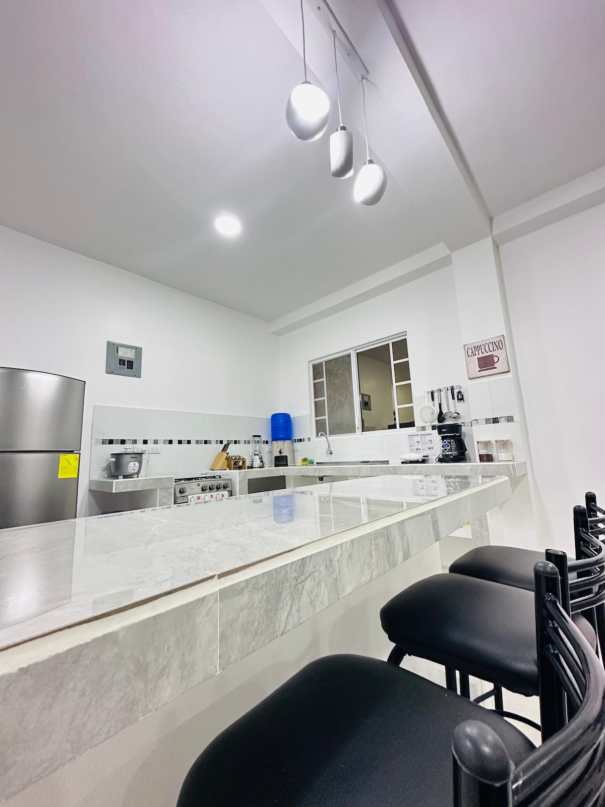 Lo tendrás todo tan cerca como Panaderías, Farmacias, Restaurantes, Mercado, Malecón, Municipio. Tan solo tendrás que caminar para llegar a todos estos lugares. Suite Familiar espaciosa y cómoda con los servicios más importantes como: Baño Privado con agua caliente, Aire Acondicionado, TV Led 50 pulgadas con más de mil canales, Internet de alta velocidad STARLINK. Tienes una cocina compartida al pie de la Suite. Tienes una mini nevera exclusiva para tu uso, licuadora multifunciones, etc.