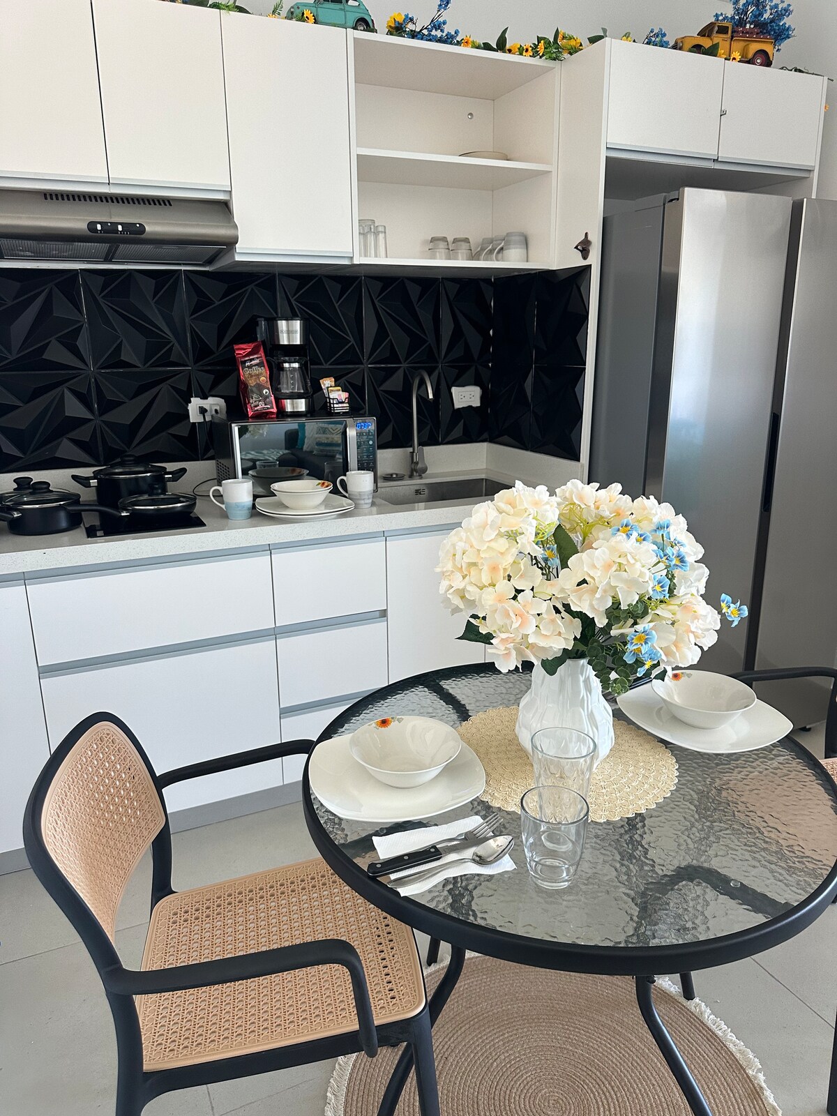 El mejor lugar en LOV. Estudio en la planta superior, seguridad cerrada las 24 horas, hermosos restaurantes en las instalaciones, Santa Fe Club, restaurante Maria's, cabañas, playa privada, bares, sendero para caminar/correr, lago, jardín paisajístico, hermoso canal, vida nocturna, gran fuente de agua, parques infantiles, junto al parque acuático, el mejor lugar para ver la gran piscina. Tenis, canchas de baloncesto, tranvías a muchas atracciones, carretera principal de la ciudad cerca a 5 minutos a pie, ¡mercado a 5 minutos a pie también! Ven a disfrutar de tus vacaciones en el Caribe