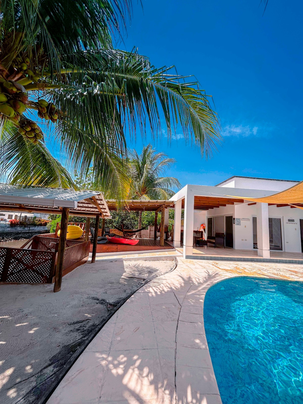 A menos de 5 km. De autopista CA09📍🚙 Ubicación privilegiada, cerca de comercios y restaurantes🏡🦩 En un entorno natural, seguro, y familiar, podrás observar iguanas, mapaches, garzas y pelícanos en su hábitat 🦝🦎 Disfruta de la piscina multicolor y comparte tus mejores historias en el patio hundido🤳🛜 Ofrecemos: -cocinera ($)🧑🍳 -traslados/ marisquería y La Torre🦞🍺 -kayaks🛶 -firepit 🔥 -lancha privada para tours, traslados y juegos acuáticos($)🚤 Pregunta precios y disponibilidad🧑💻