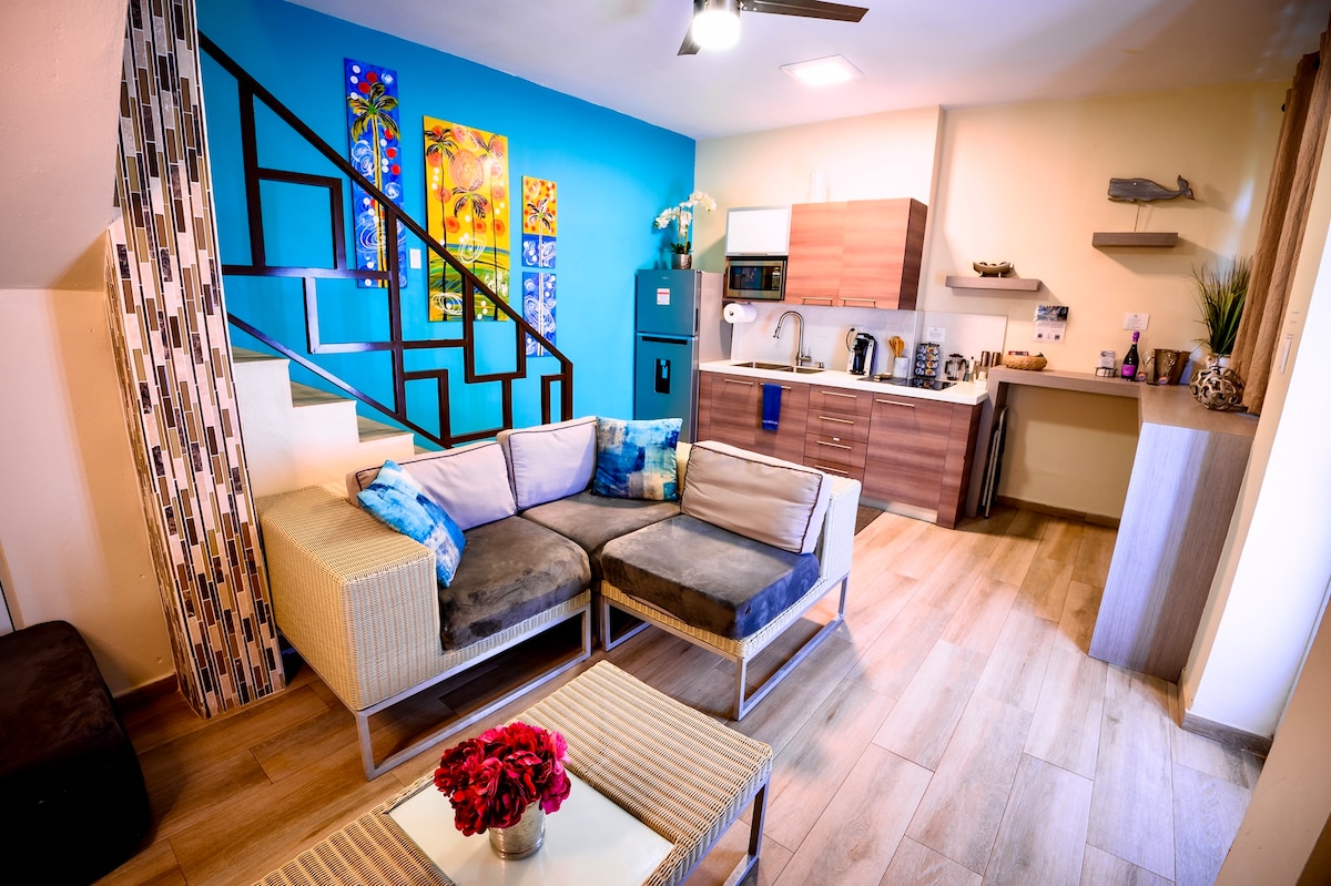 Nuestro apartamento "Penthouse" esta en un lugar estratégicamente colocado, para que puedan disfrutar de las playas de cabo rojo, tener acceso a restaurantes, chinchorros, comercios locales cerca. A la vez, el apartamento cuenta con todo lo que necesitan para una visita exquisita, tranquila y cómoda. A su vez, se distingue por su limpieza, calidad y buen gusto en decoración.. Su terraza Rooftop PRIVADO y único del apartamento es un beneficio muy deseado, disfrutar de la Piscina hermosa.