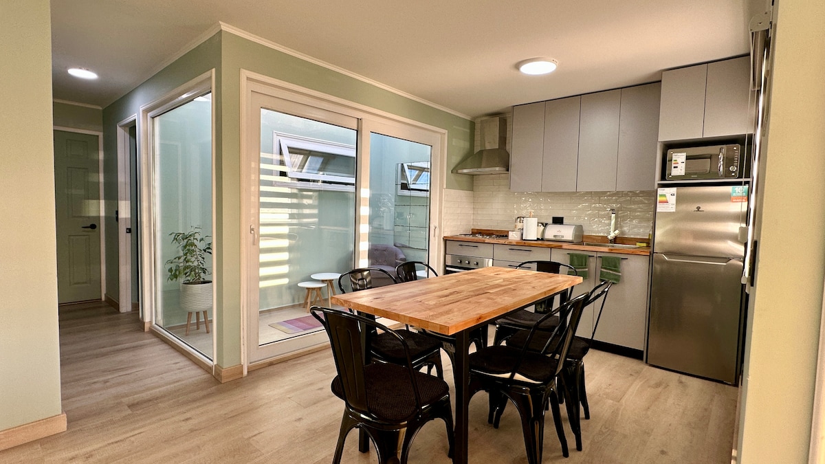Ven a disfrutar y crear recuerdos inolvidables en este alojamiento amplio, cómodo y remodelado cercano a la playa de Puerto Varas, en un ambiente relajado y próximo a excelentes restaurantes en la costanera. Podrán disfrutar de nuestra casa que cuenta con 4 dormitorios, 1 en el primer piso y 3 dormitorios en el segundo piso, cocina y baños complemente equipados y estacionamiento techado para un vehículo. Incluye Wifi y espacio para teletrabajo. ¡Haz tu reserva y crea recuerdos inolvidables!