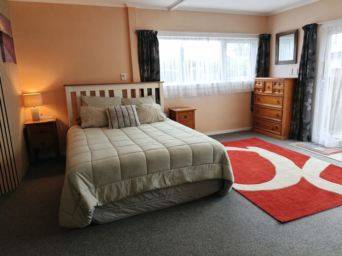 Bienvenido a McArthur Park, ubicado a solo minutos de Hawera con vistas al monte Taranaki. Disfruta de un espacioso dormitorio con cama tamaño king con vistas al jardín y a la montaña. Hay disponible un segundo dormitorio queen más pequeño por un cargo adicional de 30 USD por persona. Ambos dormitorios tienen acceso a una soleada zona de cocina americana para disfrutar de un delicioso desayuno continental. TU PROPIO BAÑO PRIVADO También está disponible tu propia sala de estar privada con un piano de media cola, Sky TV y wifi en toda la casa. ¡Esperamos que lo disfrutes!