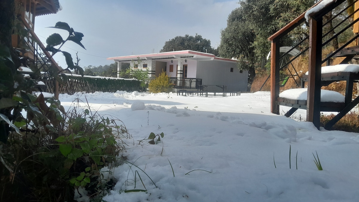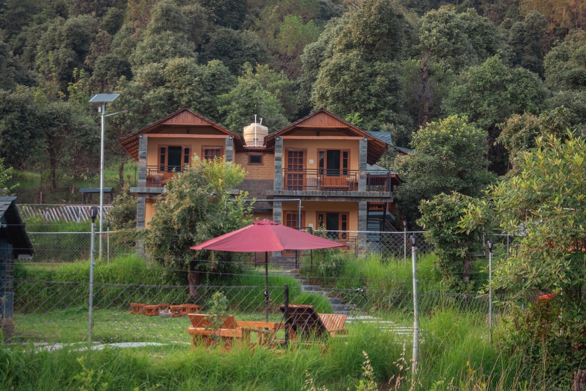 Enjoy the sounds of nature when you stay in this unique place. Surrounded by serene greenery and fresh mountain air, these thoughtfully designed spaces offer warmth, peace, and a deep connection with nature. Perfect for a relaxing escape, room has cozy interiors and balcony outside for a truly unique and rejuvenating stay.