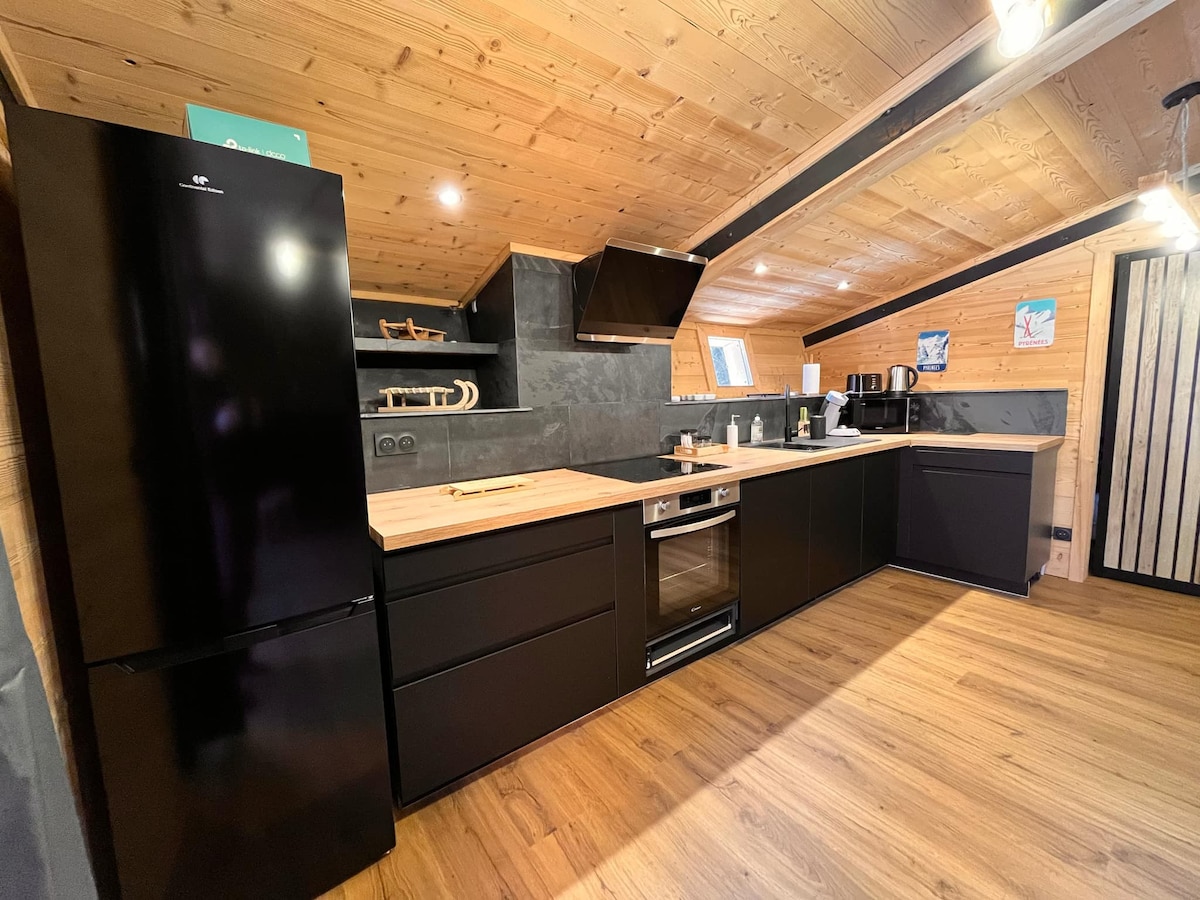 Chalé reformado de 50 m², enclavado en el corazón de un pinar, con terraza privada y vistas al jardín. 🏡 Capacidad hasta 6 personas, ideal para familias o amigos. 🛋️ Sala de estar luminosa con sofá cama, 🍽️ Cocina totalmente equipada, 🛏️ 2 habitaciones separadas con TV, 🚿 Cuarto de baño moderno con inodoro. ⛷️ A 5 minutos a pie de las pistas de esquí, 🛍️ Tiendas y servicios a solo 2 minutos. ¡🅿️ Aparque su coche y olvídese de él durante la estancia!