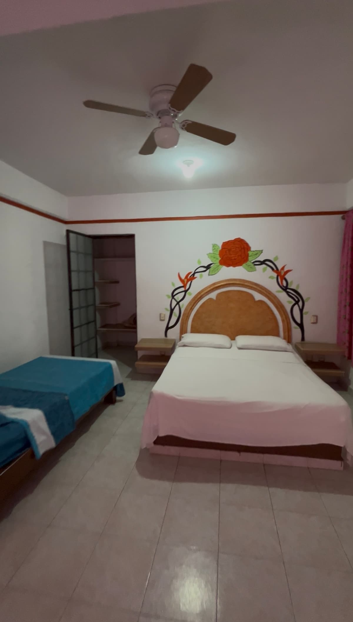 Departamento ubicado en 2do piso, se tienen que subir escaleras, habitaciones con ventilador, espacio de sala con ventilador, baño, vigilancia via CCTV 4 camaras en exteriores, Internet basico, servicio de Smart tv roku en sala y recamara principal, cocineta con barra y 2 bancos altos y refrigerador con dispensador de agua fria