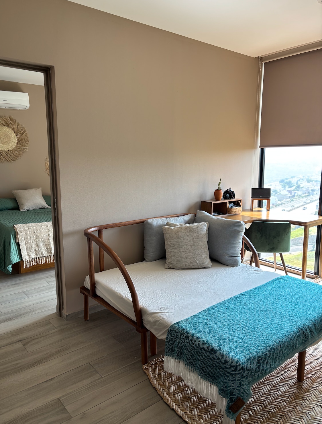 Tropic: apartamento de inspiración playera en Querétaro Tropic es un apartamento acogedor de estilo playero perfecto para trabajadores remotos, nómadas digitales o turistas. Ubicado en una zona privilegiada de Querétaro, está cerca de cafeterías, restaurantes, tiendas y una estación de autobuses. El apartamento cuenta con una cama tamaño queen, un sofá cama (con capacidad para 3), un espacio de trabajo dedicado con impresionantes vistas y una cocina totalmente equipada. Disfruta del equilibrio perfecto entre comodidad, estilo y comodidad durante tu estancia en Querétaro.