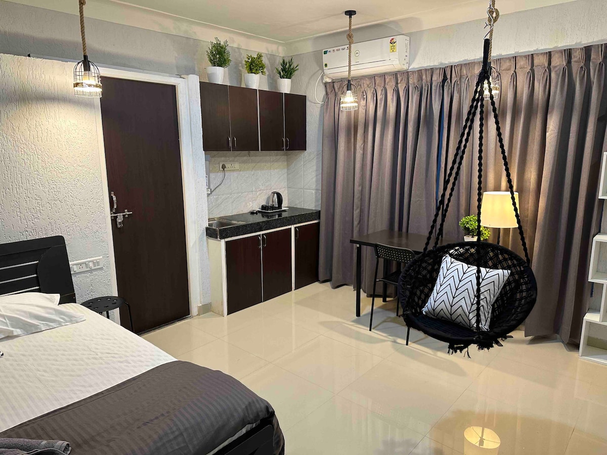 Ubicado cerca de las pintorescas colinas de Pashan-Baner, nuestro encantador apartamento con servicio ofrece el refugio perfecto donde la comodidad se une a la conveniencia. Tanto si estás de vacaciones como de viaje de trabajo, disfruta de la calidez de un hogar lejos de casa. Ubicado cerca de la carre principal, tendrás fácil acceso a tiendas esenciales, restaurantes y servicios de taxi sin problemas. Despiértate en un entorno tranquilo y sigue conectado al vibrante pulso de la ciudad. ¡Ven a relajarte, desconectar y siéntete como en casa!