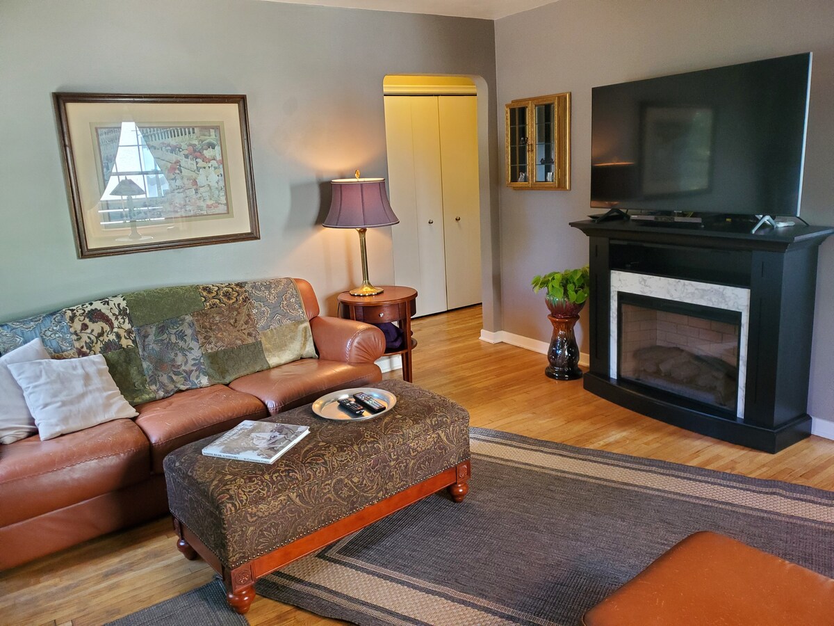 ¡Bienvenidos! Esta cómoda suite de dos habitaciones, con chimenea y bañera de hidromasaje, está situada justo debajo de Summit Avenue, junto a West Seventh y Grand Avenue. A pie de restaurantes locales, del Grand Casino Arena y de centros artísticos. * Grand Casino Arena: 10 minutos a pie * Ordway: a 15 minutos a pie * Restaurantes/cervecería a menos de una milla a pie. * Línea de metro 54 desde el aeropuerto al centro de la ciudad. 8 millas Esta suite se encuentra en el territorio de Lako’tyapi y Wahpekute-Octi’ Sakowin Oyate.