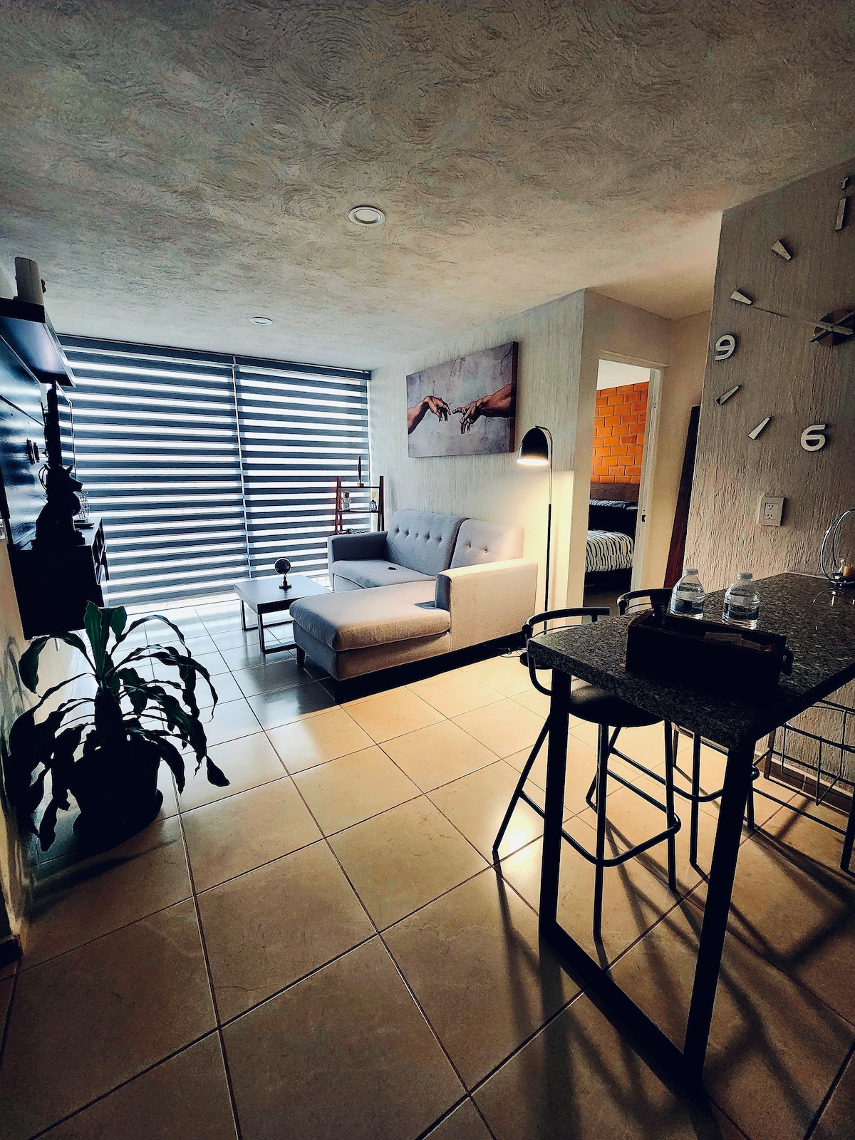 Departamento a 3 min del Estadio Jalisco & 15 min del Centro Histórico además se encuentra dentro de un condominio, vigilancia 24 horas, cajón privado de estacionamiento, departamento muy acogedor te encantara.