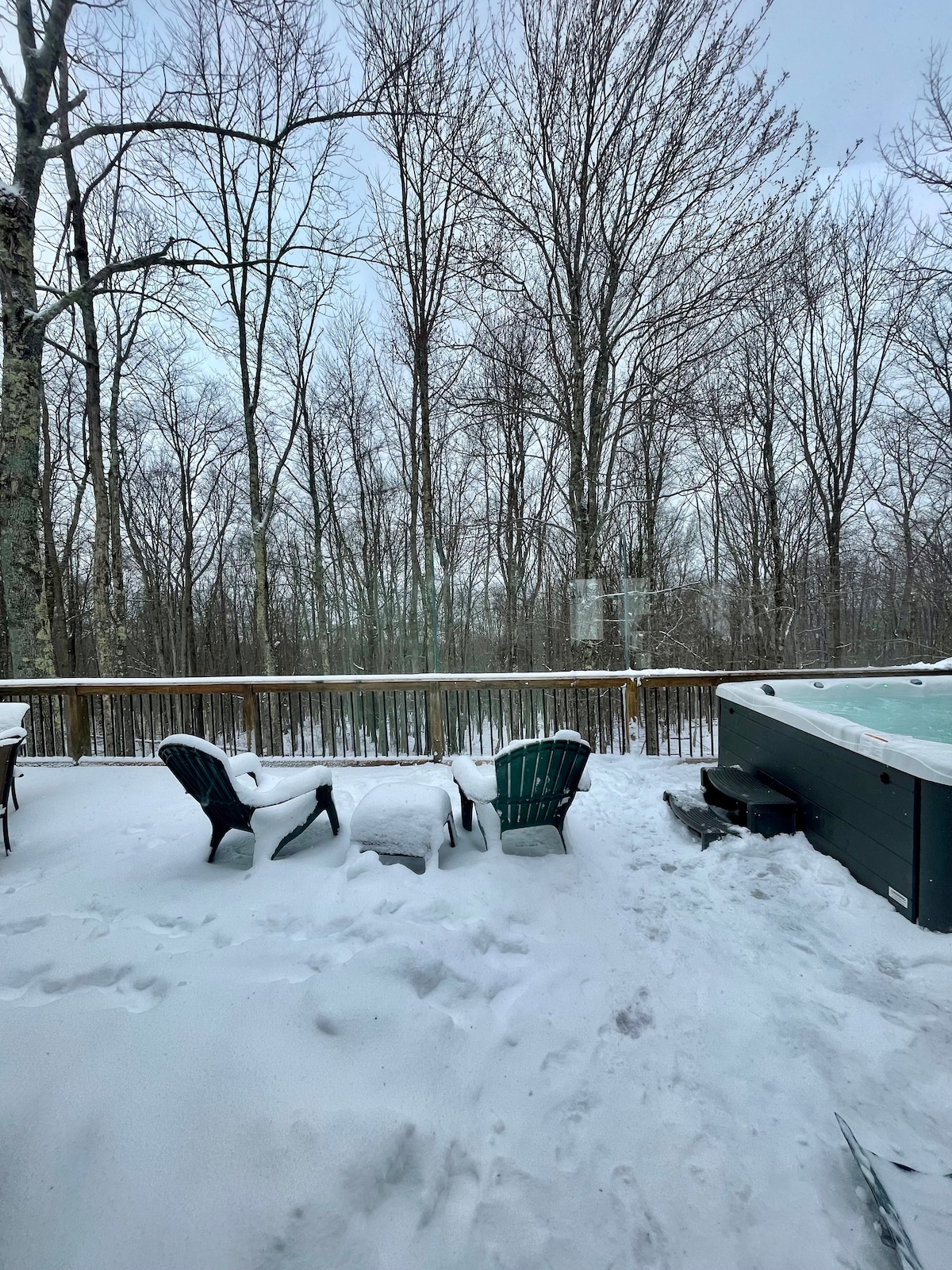 En Chamonix Chalet, disfruta de unas vistas impresionantes de las montañas Allegheny desde este espacioso retiro de 5 dormitorios. Un paraíso para los esquiadores, el chalet se encuentra en la cima de Snowshoe Mountain, a pocos pasos de las pistas. Relájate en el jacuzzi de la amplia terraza, rodeado de la serenidad y la belleza natural de las montañas. ¡APARCAMIENTO GRATUITO! ¡Evita las tarifas de Snowshoe y aparca gratis en Chamonix! Toma el servicio de transporte desde el chalet hasta cualquier parte de la montaña con facilidad. Solo una llamada rápida para programar una cita.