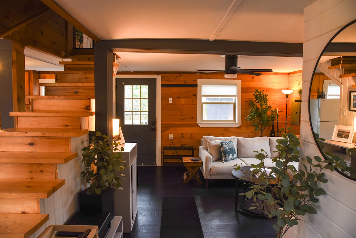 ¡Esta cabaña es cualquier cosa menos ordinaria! Ubicada en un acantilado abierto en el bosque de Kingfield, Maine, esta maravilla arquitectónica es una escapada perfecta para una pareja o un grupo. Es un espacio cálido y acogedor para volver y relajarse después de un largo día de esquí o cualquier actividad de cuatro estaciones. La sala de estar de concepto abierto y la cocina recién remodelada cuentan con comodidades modernas como una máquina de café expreso, TV inteligente y muebles cómodos que te harán sentir como en casa. ¡A solo 20 minutos de Sugarloaf Mountain!