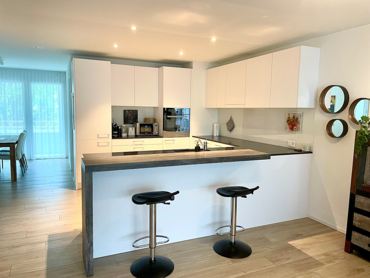 Elegante apartamento urbano (85 metros cuadrados) en el corazón de Rapperswil, la hermosa ciudad de las rosas. Este apartamento céntrico ofrece la emoción de la vida urbana. Disfruta del ambiente vibrante y disfruta de la comodidad. A 5 minutos a pie de la estación de tren, a 2 minutos del casco antiguo y a 5 minutos el paseo marítimo del lago. A 35 minutos en tren de Zúrich. Ideal para parejas, familias y viajeros de negocios. Capacidad máxima para 4 personas. Wifi súper rápido. Descuento semanal/mensual disponible (7 o 28 noches).