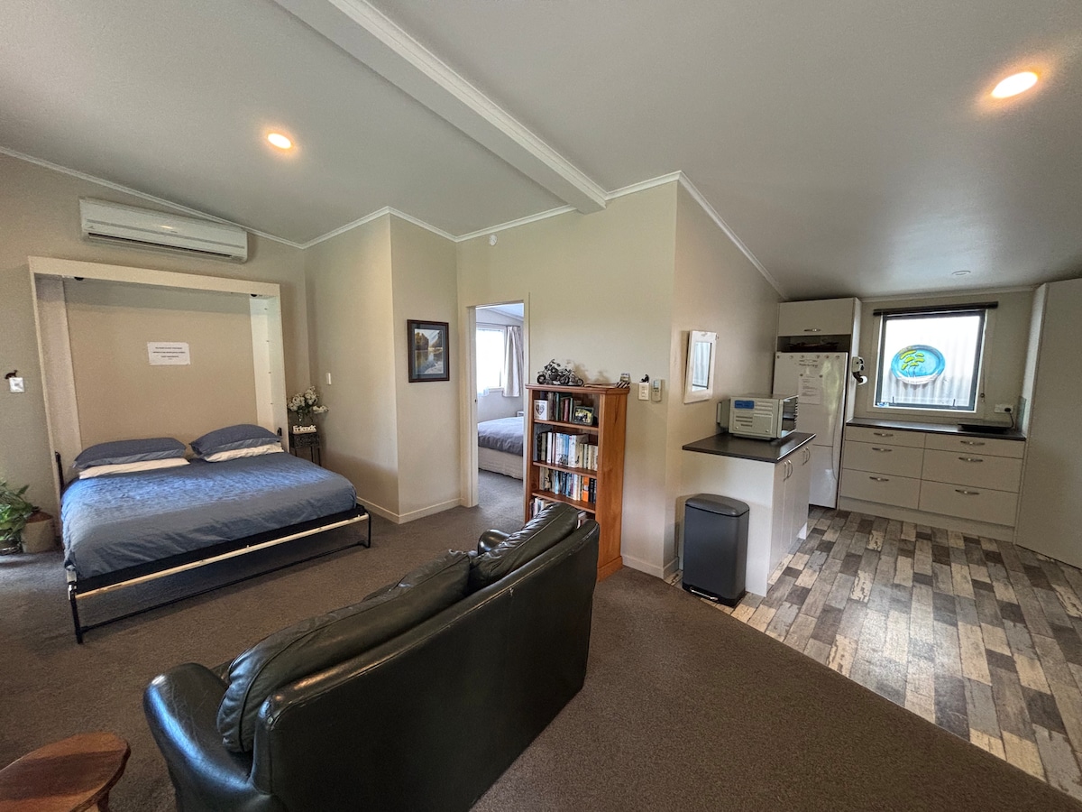Nuestro alojamiento es de nueva construcción, detrás de un edificio histórico, a pocos metros de la hermosa playa de la bahía de Tokomaru. Las instalaciones son modernas, con bomba de calor/aire acondicionado, y tienen capacidad para 4 personas con estilo, comodidad y facilidad. Una cama tamaño queen está en el salón como una cama plegable/retráctil y la segunda en un dormitorio separado. La ducha y el inodoro son compartidos por todos los huéspedes, pero se accede a ellos a través del dormitorio.