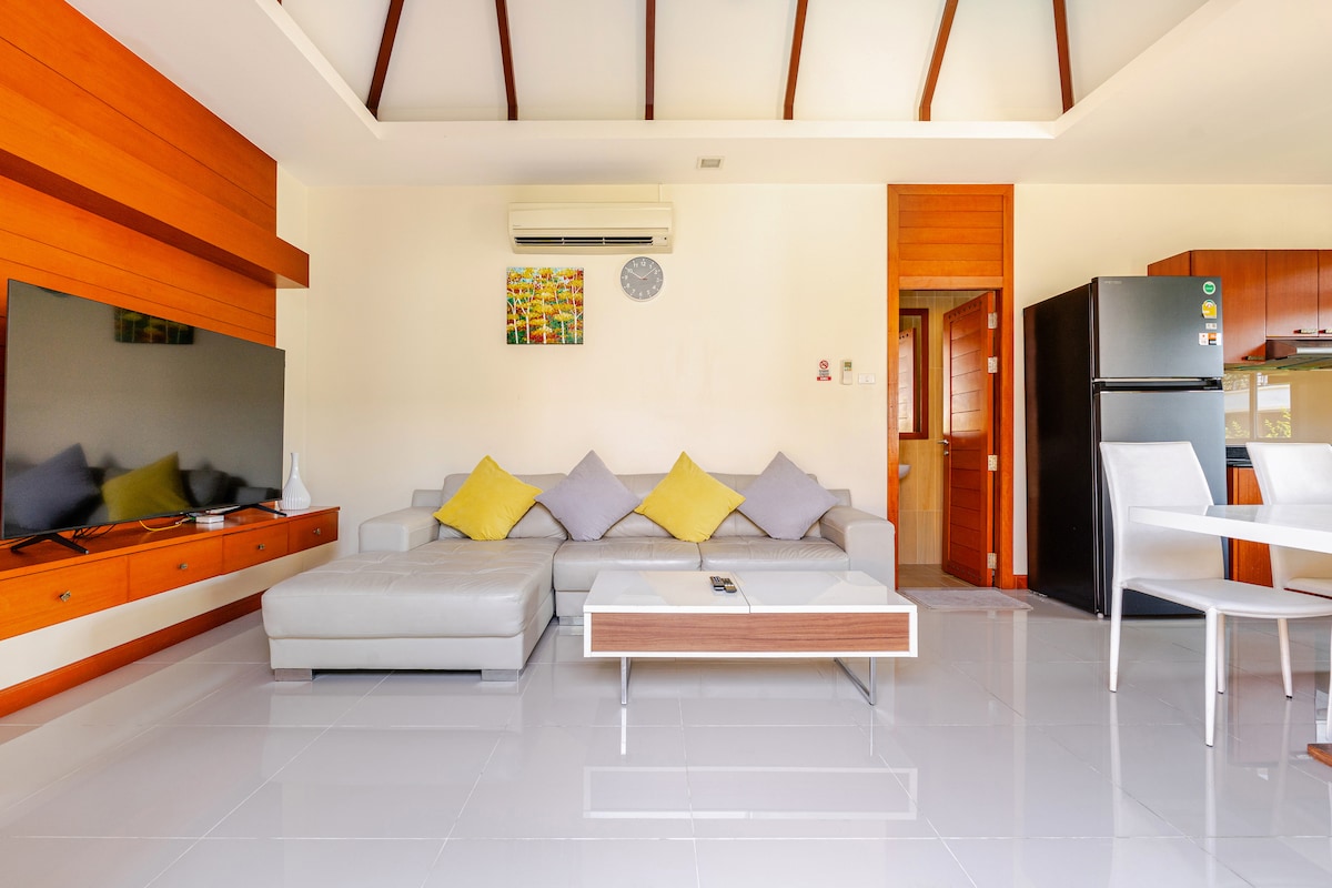 El estudio cuenta con impresionantes vistas al mar, lo que te permite dormir con el relajante sonido de las olas y despertarte con impresionantes amaneceres. Ubicado en la tranquila bahía de Ao Yon, una de las pocas playas de Phuket durante todo el año, este estudio ofrece un refugio tranquilo sin comprometer la comodidad. Disfruta de un fácil acceso a bares, restaurantes y tiendas de comestibles, todo a poca distancia a pie, lo que garantiza una estancia relajante pero accesible.