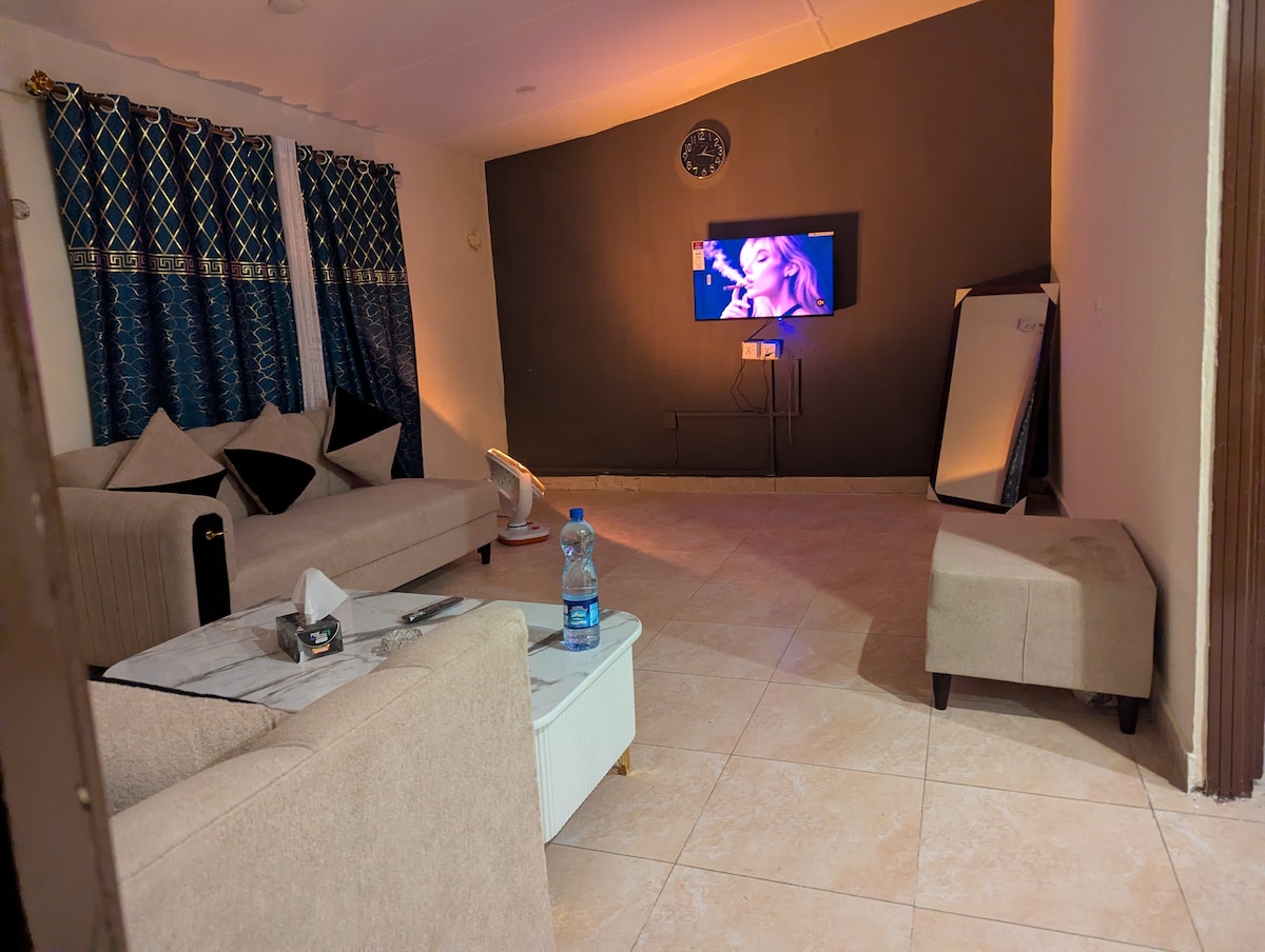 luxurious, super clean two bedroom unit with a kitchenette and tv lounge; upper floor of a bungalow with all basic amenities for a comfortable stay. Private separate entrance and safe gated community. The kitchenette comes with a refrigerator and basic cooking utensils and accessories. Spacious clean washrooms with running hot water and basic toiletries. Centrally located with grocery stores, parks and hospitals on a walking distance.