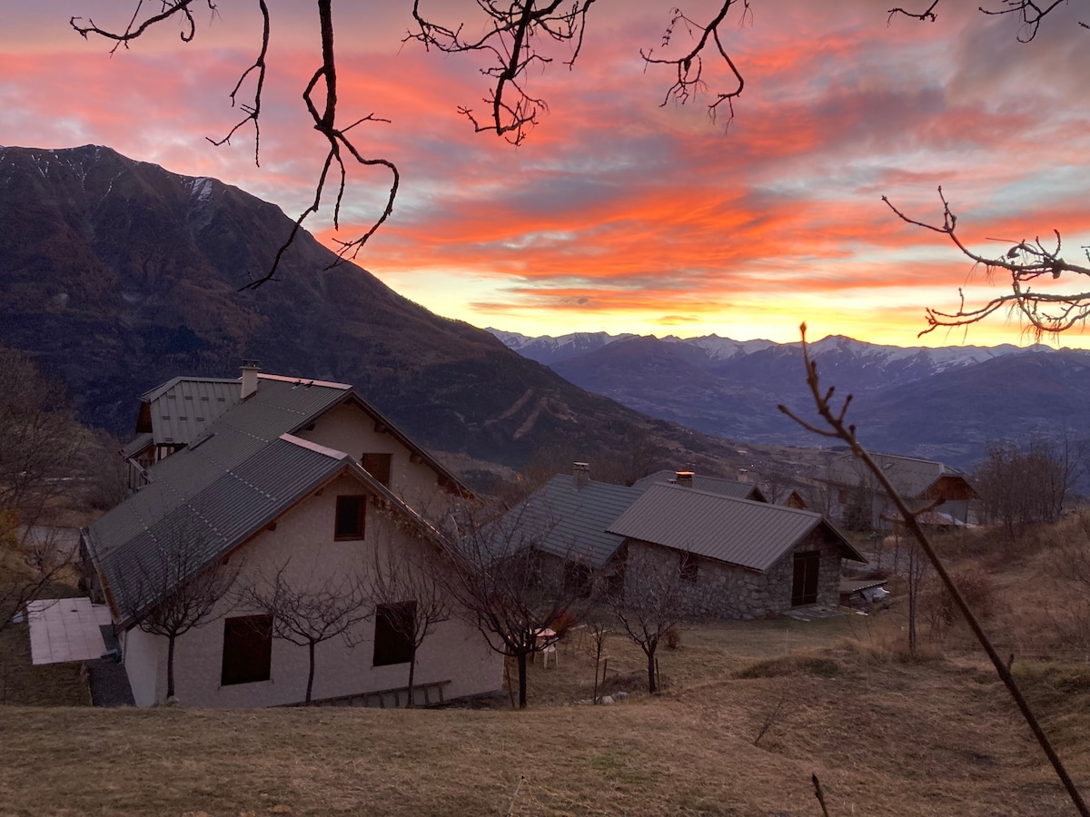 Apartamento independiente, acondicionado bajo nuestra casa. Disfrute de un confort óptimo y de una cálida decoración de montaña, con el placer de una estufa de leña para noches acogedoras. Ubicado en plena naturaleza y sin vecinos, este lugar le garantiza una estancia tranquila y apacible. ¡Las grandes aperturas le permiten admirar una de las vistas más bonitas de los Altos Alpes! En el exterior hay una gran terraza privada y protegida (equipada con sofá, mesa y barbacoa).