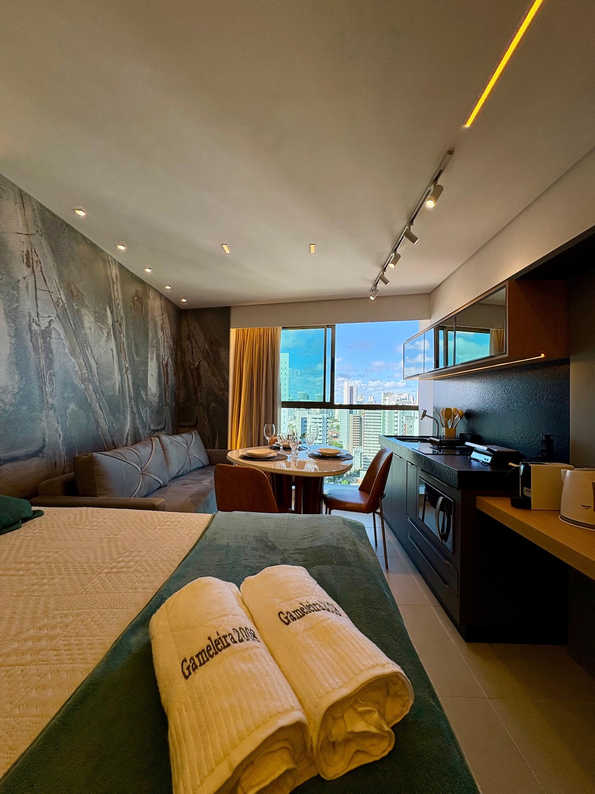 Disfruta de este completo estudio en un piso alto en la mejor ubicación de Boa Viagem, a 2 minutos del mar, una pequeña plaza y a 5 minutos del aeropuerto. Relájate en una cama tamaño king, Smart TV de 65 pulgadas y aire acondicionado completo. Para la productividad, ofrecemos un monitor de 24 pulgadas y wifi de 600 mb/s. El edificio cuenta con piscina y salón en la azotea con increíbles vistas, gimnasio, minimercado, aparcamiento cubierto y conserje las 24 horas para facilitar el registro de entrada. La unión perfecta entre la comodidad del hotel y la practicidad residencial en Recife.