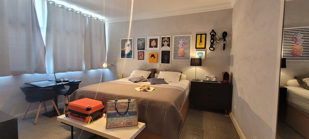 Um loft funcionou com todo requinte para uma estadia tranquila e agradável, Tv com Netflix, Cozinha com utensílios domésticos para preparar suas refeições, ao lado de padarias, supermercados e farmácias. Atenção PISCINA está indisponível de 02/03 á 15/03/2026. Temos portaria 24 horas, o check-in é feito direto na portaria a qualquer hora após às 15:00hs, mediante cadastro feito antecipadamente pelo anfitrião. OBS.: Não disponibilizamos sabonete em barra apenas sabonete líquido.
