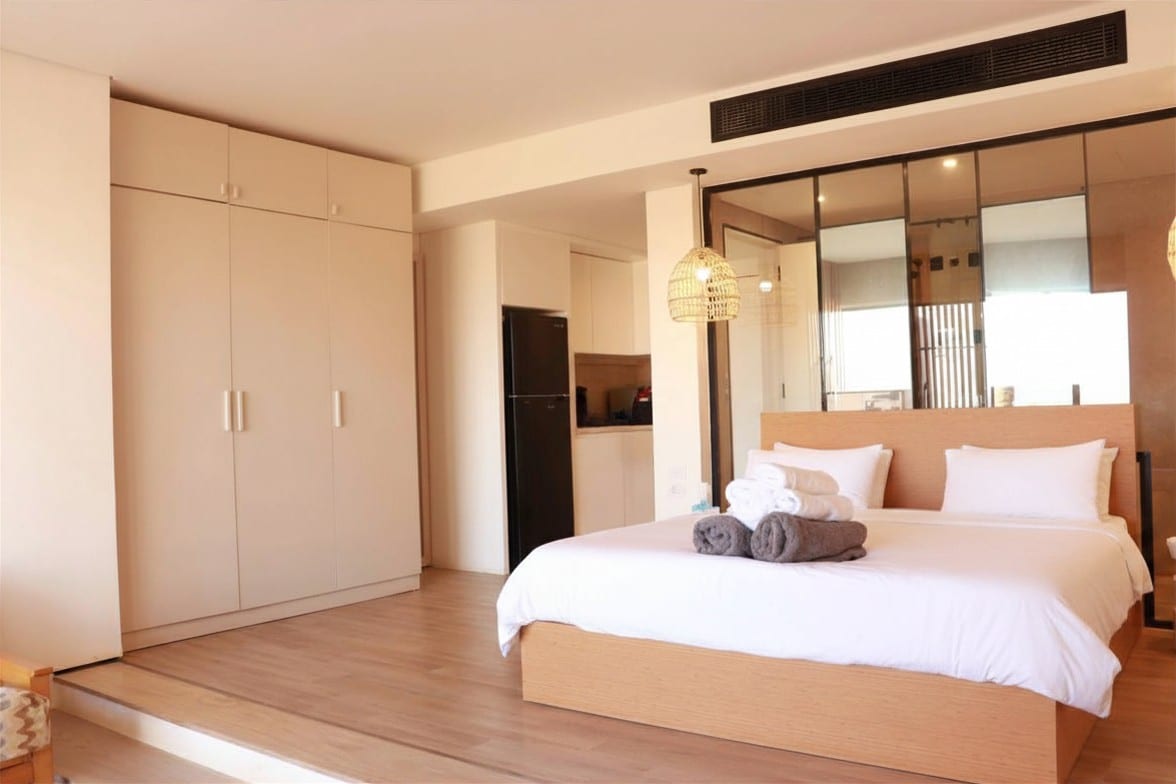Elegante estudio en la azotea a solo 1 minuto de la playa en la tranquila Assalah. Cuenta con balcón con vistas al mar, cocina, TV inteligente, aire acondicionado y wifi rápido, perfecto para parejas o viajeros solitarios.