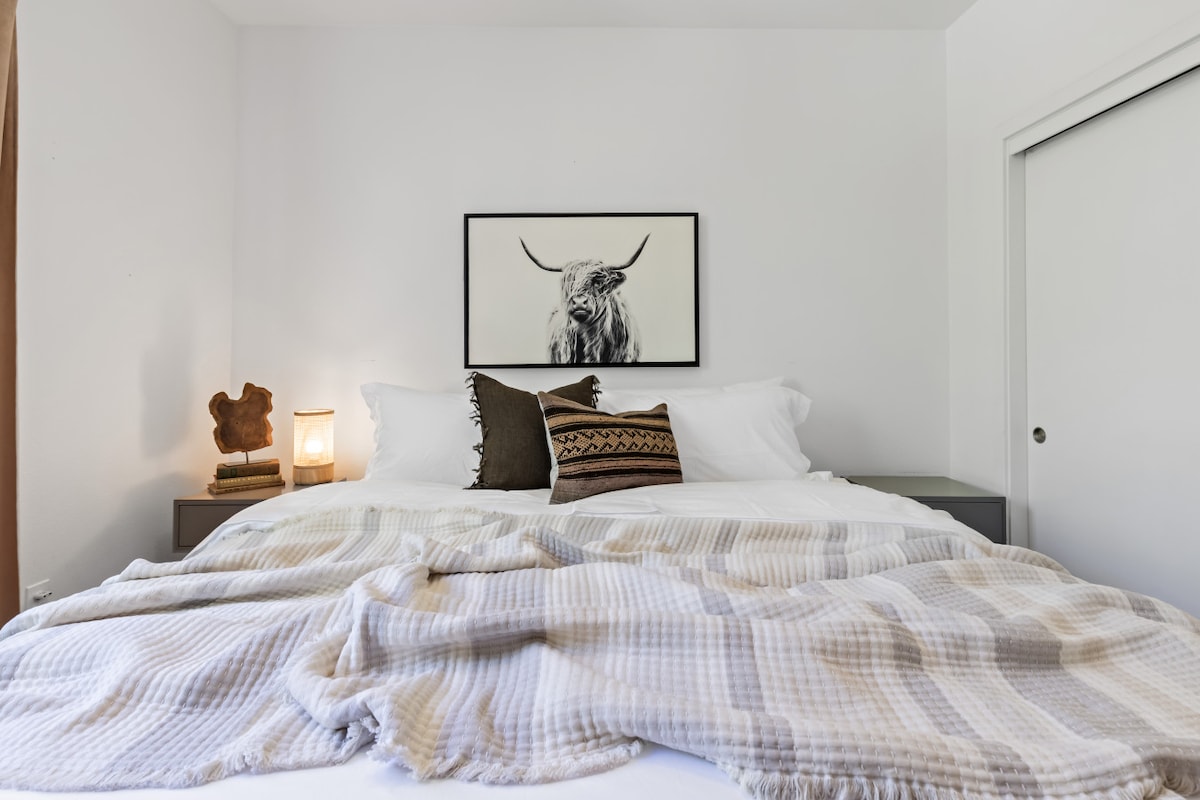 Descubre un santuario con estilo que combina diseño y comodidad, a solo 3 minutos de la I-5 y a media milla a pie del centro de la ciudad, con restaurantes, bares y cafeterías vibrantes. Este refugio cuidadosamente renovado está diseñado para tu disfrute, con extras encantadores para que tu estancia sea excepcional. Relájate en la acogedora biblioteca o escápate a un oasis en el patio trasero con minigolf, juego de la soga, un pozo de fuego de gas o relájate en nuestro columpio sombreado.