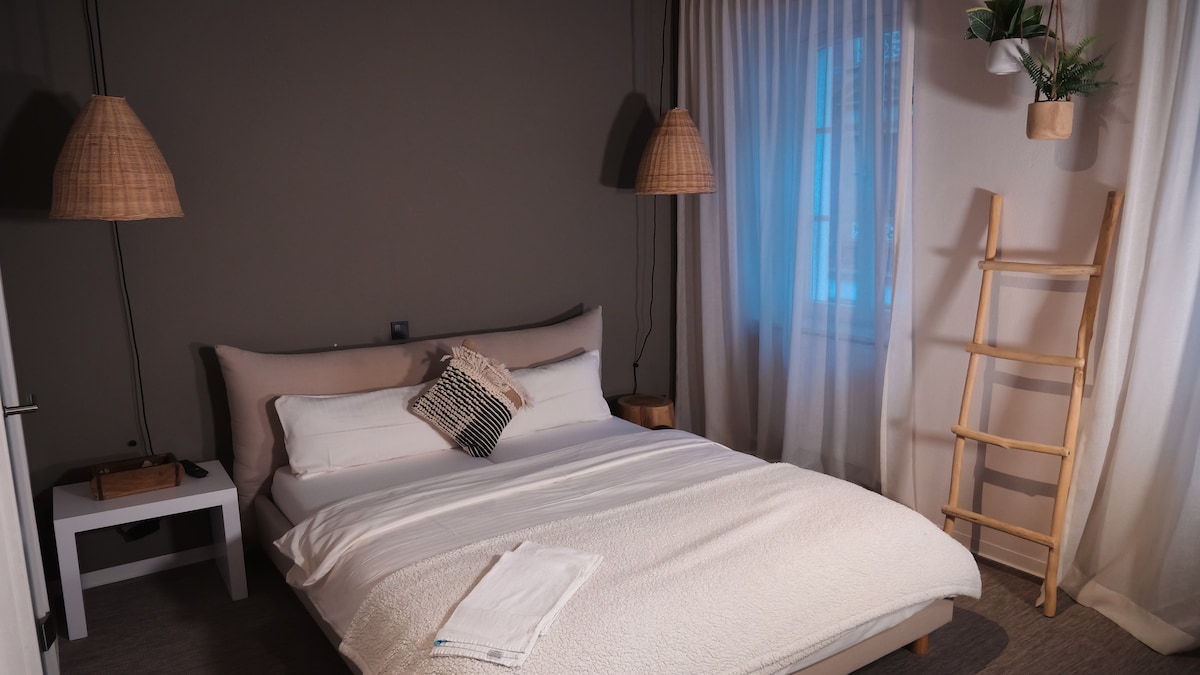 Gran habitación luminosa con cama grande (160 cm), le encantará por su espacio y su cálida comodidad. Cuarto de baño con ducha, calefacción y almacenamiento. Desayuno expreso en el minibar (incluido en la tarifa) y bandeja de cortesía con hervidor de agua. Wifi, tv canales TNT + acceso a Netflix y Amazon, secador de pelo, ropa de cama y baño, gel de ducha, champú, estacionamiento gratuito frente a la casa, acceso local para bicicletas/motocicletas, acceso al jardín. Llegada autónoma gracias a las cerraduras conectadas.