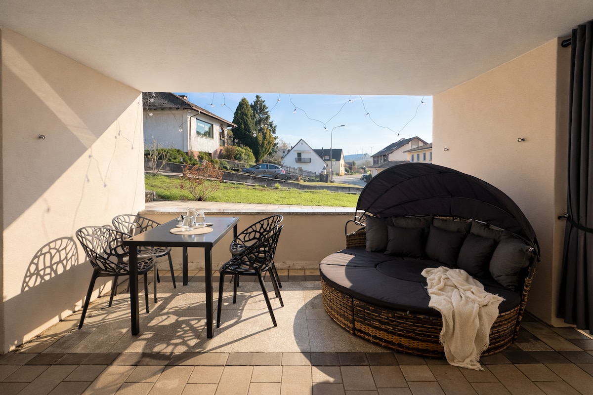 A solo 3 minutos en coche del lago Bostal, comienza tu descanso de bienestar de primera clase. SOLO PARA LOS HUÉSPEDES DE ESTE APARTAMENTO: Bañera de✅ hidromasaje: precalentada y cubierta ✅ Sauna exterior con ventana panorámica ✅ Ducha de calor por infrarrojos ✅ Baño de diseño con ducha de efecto lluvia y motivo de pared ✅ Terraza con muebles de salón y vistas al campo ✅ Cocina totalmente equipada ✅ Cómoda cama con somier y sofá cama ✅ Calefacción por suelo radiante ✅ Pérgola con luz LED y listones ajustables El alojamiento ideal para parejas y familias pequeñas.