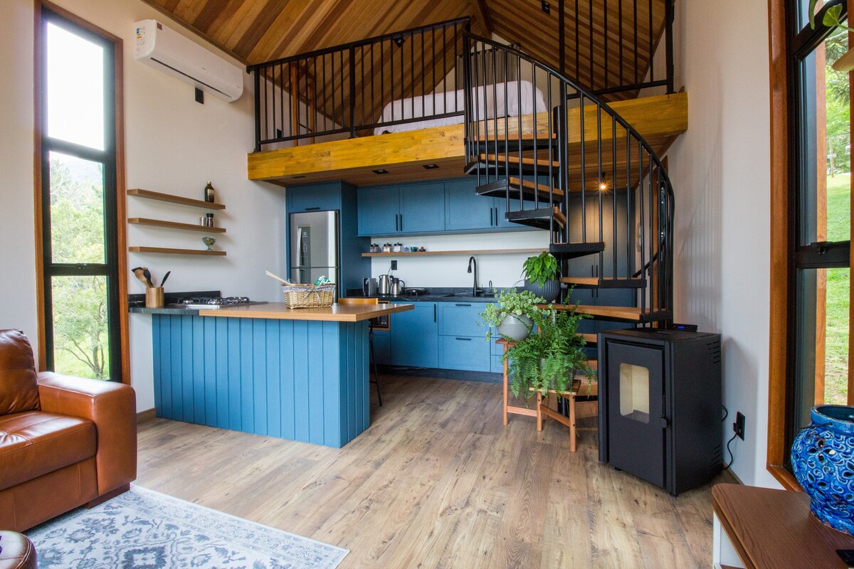 Cabaña de alta gama ubicada en la zona rural de São José dos Pinhais en una propiedad segura, rodeada de increíble naturaleza. * Se incluye una cesta de desayuno proporcional al número de noches, cesta disponible a la llegada. * Relájate en nuestro hidromasaje interno. * Chimenea * Aire acondicionado * Fogata * Cocina totalmente equipada (nevera, sandwichera, placa de cocción, horno, microondas, cafetera, ollas y utensilios). * Smart TV. * Internet. * Calefacción de gas. * Local para 2 personas (+18)