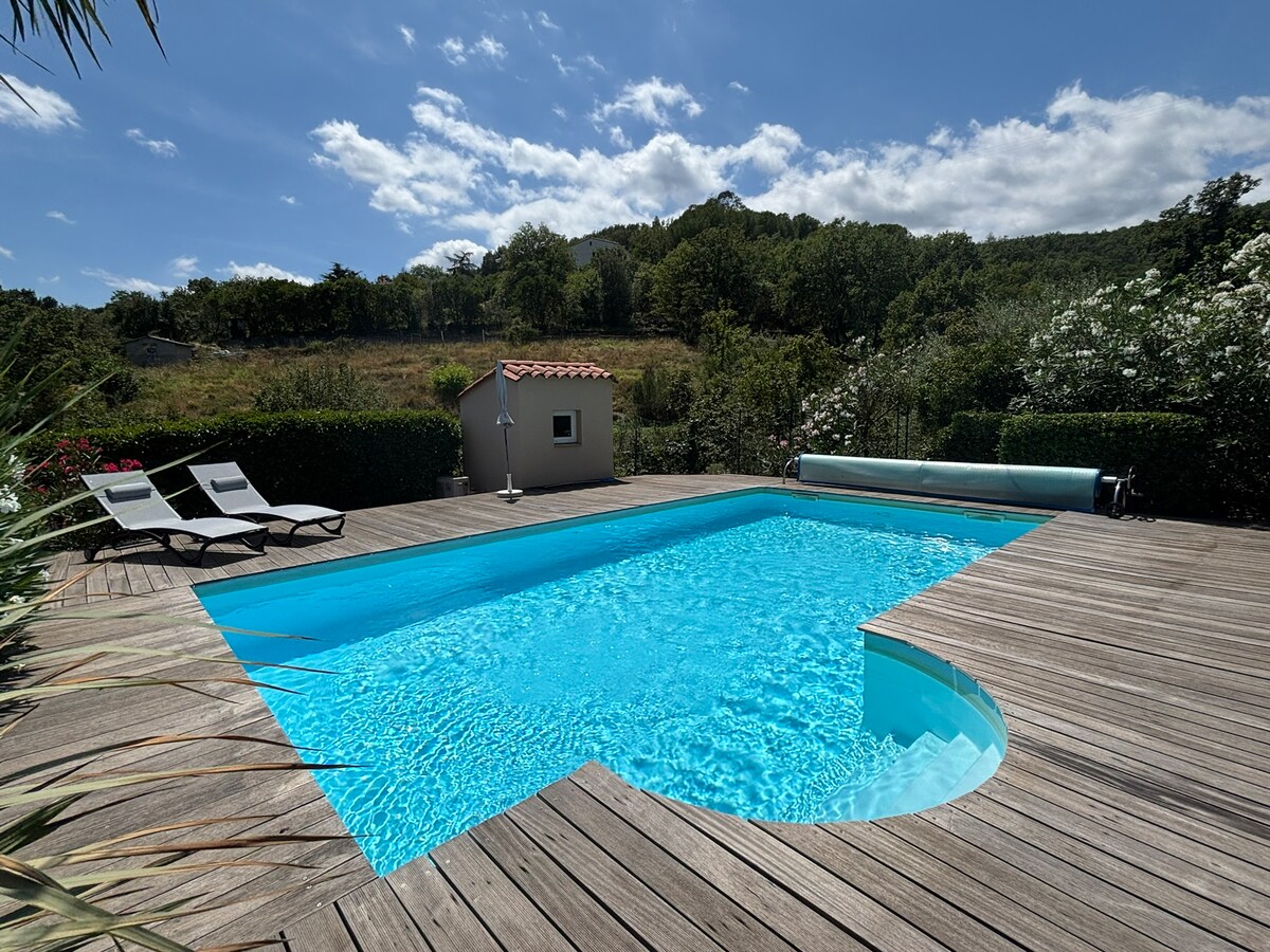 Villa con piscina privada y WIFI basado en fibra en alquiler solo semanalmente. Ubicación soleada, con vistas, en un barrio residencial tranquilo. No apto para grupos de jovenes/estudiantes Capacidad para 8 personas. Todas las facilidades modernas. A 15 min caminando del centro de Céret y 25 min en coche de la playa.