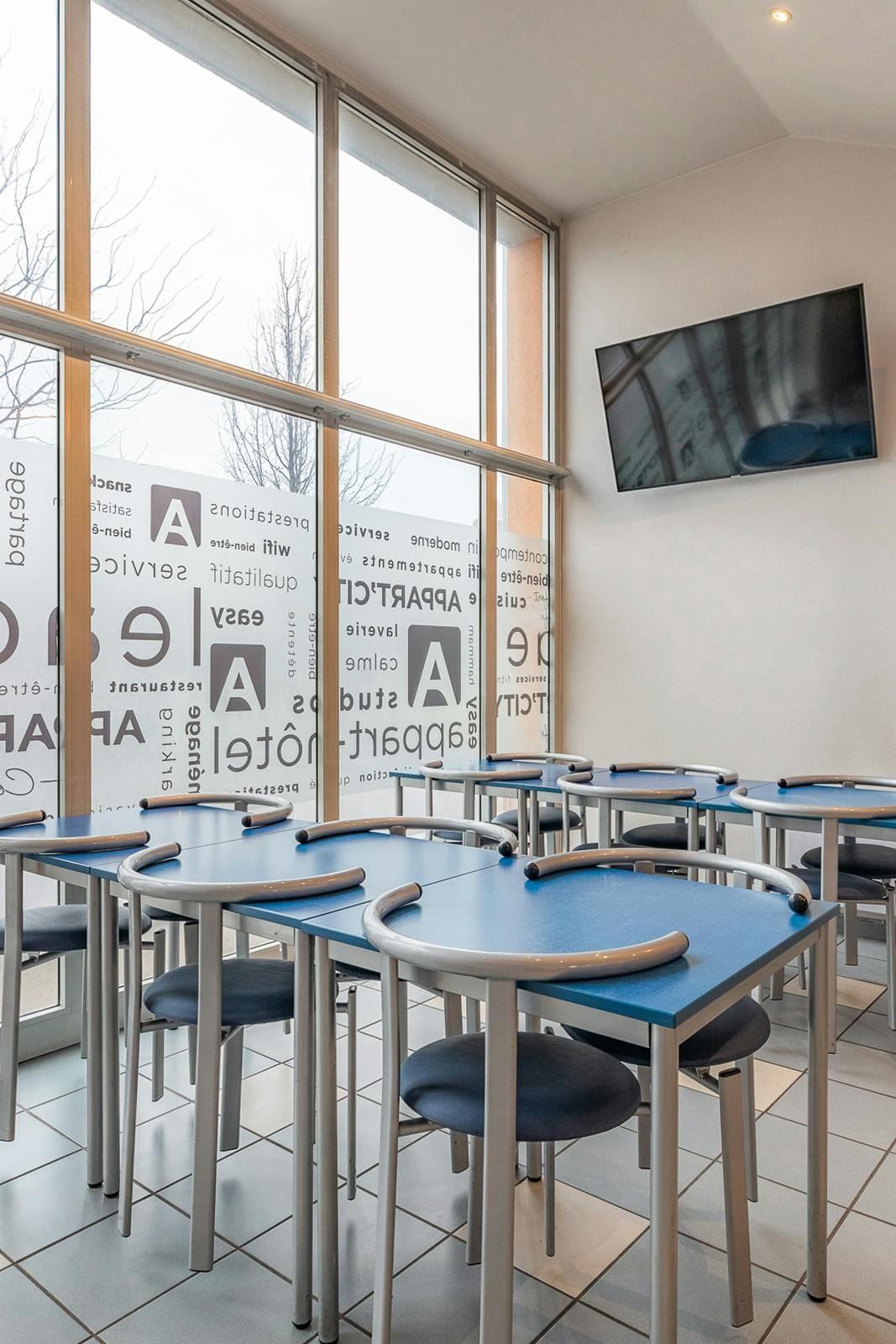 Nuestros estudios están compuestos por una habitación principal (cama doble, escritorio biblioteca, mesa de comedor, sillas y armario con armario y estantería), cocina (fregadero, microondas, placas eléctricas, nevera y muebles altos y bajos) y un baño (bañera, inodoro, diadema spots, lavabo). En cuanto al equipamiento encontrará: platos, vasos, cubiertos… lo necesario para hacer la comida, la TV (el acceso por WIFI está disponible de forma gratuita en las habitaciones).