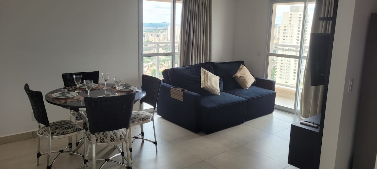 Apartamento Studio nuevo y moderno ubicado en una zona privilegiada de Ribeirão Preto, cuenta con Wi-Fi, aire acondicionado, cocina completa, smart Tv 40', gimnasio BlueFit en el edificio, Air fryer, plaza de garaje y área de ocio completa, piscina, sauna, sala de juegos, espacio gourmet, espacio de coworking para trabajar, home market 24h y la mejor ubicación de la ciudad, en la Avenida Presidente Vargas a 3 minutos del centro comercial Ribeirão y cerca de los mejores parques, bares y restaurantes de Ribeirão.