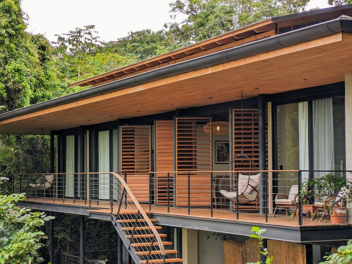 Bienvenido a Aysana Jungle House, una casa moderna ubicada en plena naturaleza, a solo 5 minutos en coche de las playas y del centro de Santa Teresa. Situada por encima de la copa de los árboles, la casa ofrece impresionantes vistas a la selva y al océano, con espectaculares atardeceres. Diseñada para una estancia relajante, combina diseño limpio, confort y serenidad. Puede alojar hasta 4 huéspedes y cuenta con todo lo necesario para sentirse como en casa, rodeado de naturaleza.