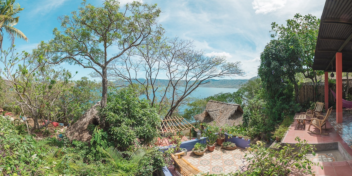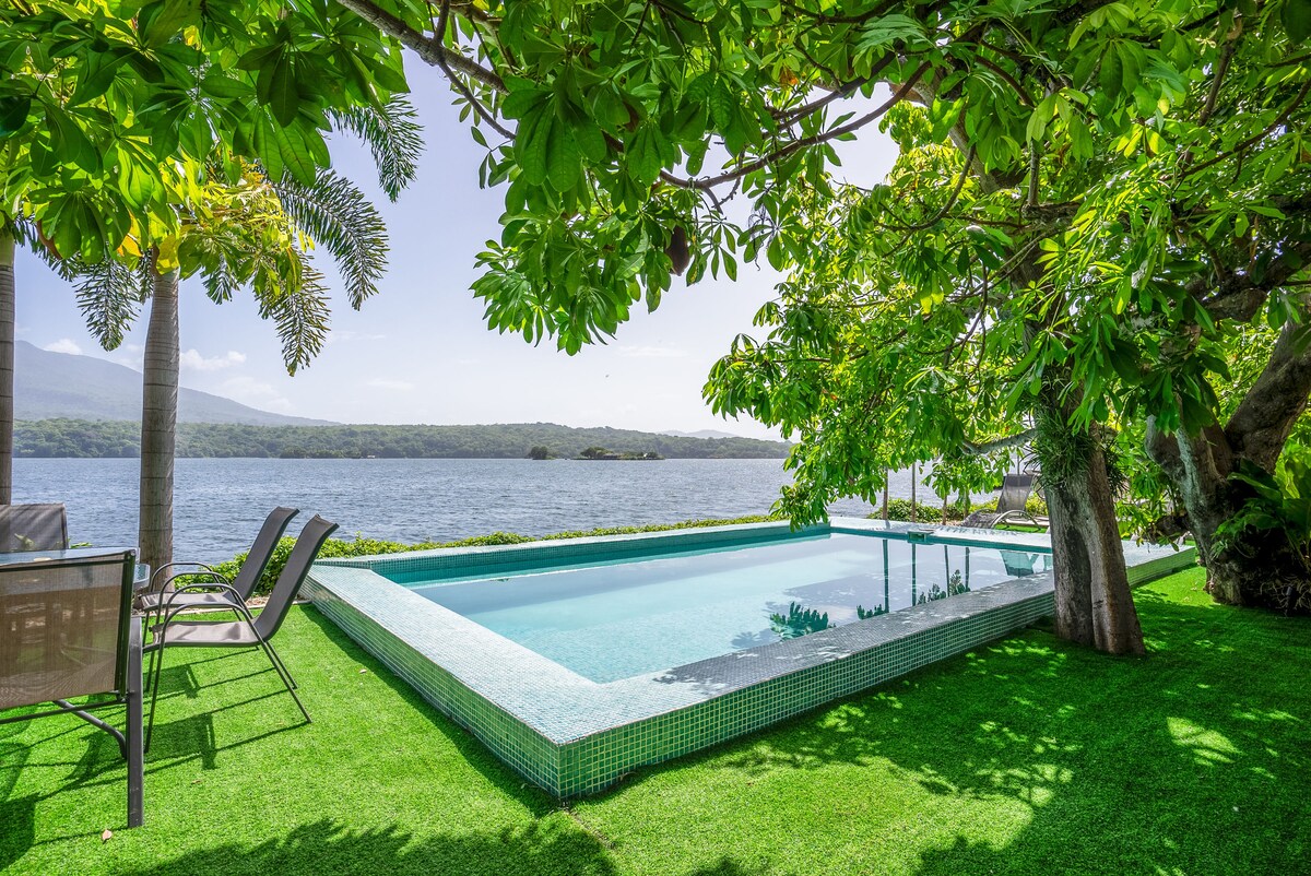 Disfrute de los sonidos de pájaros y monos exóticos, relájese y disfrute de todo lo que la naturaleza tiene para ofrecer en su propia isla privada. A menos de 5 minutos de la puerta de Asese y a 10 minutos de Granada, declarada Patrimonio de la Humanidad por la Unesco. La isla está llena de exuberantes flores y una hermosa vista del volcán Mombacho. La casa de vidrio se mezcla con los árboles, brindando privacidad para su estadía. Nade, haga kayak o simplemente disfrute del hermoso entorno.