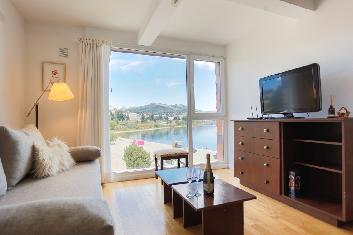 Despierta con los primeros rayos del sol para descubrir los mejores paisajes de Bariloche, lago y montañas, a solo 2 cuadras de la costanera de Bariloche. Acomoda hasta 6 personas en dos dormitorios más un sofa cama en el living, cuenta con dos baños, amplia cocina y comedor con tv, e internet de fibra óptica.
