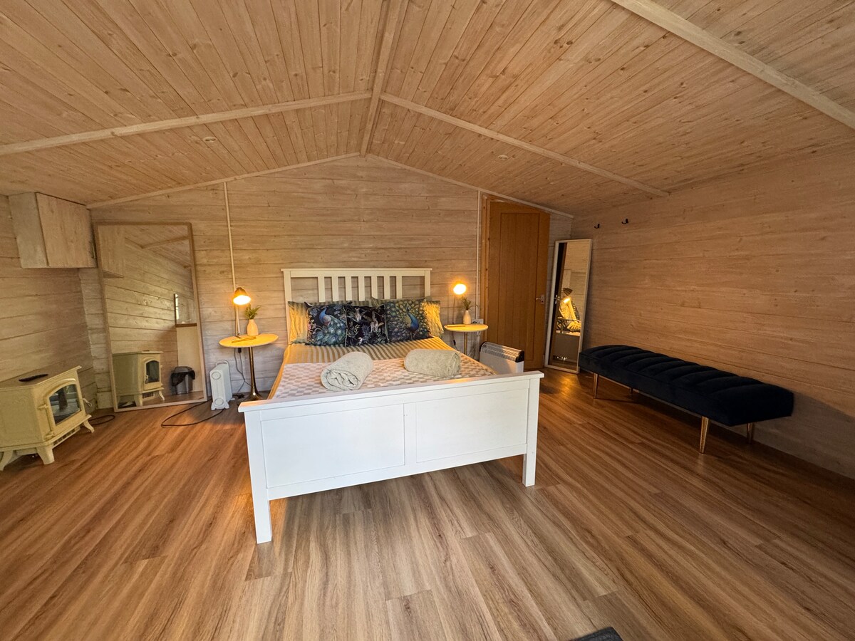 Escápate a nuestra cabaña glamping en la campiña de los Cotswolds. Esta cápsula independiente ofrece una mezcla perfecta de comodidad y belleza natural y proporciona un refugio tranquilo para dos. • Cama tamaño king con edredón de lana de oveja natural y almohadas de plumas. • Espacio exterior privado y vallado • Bañera de hidromasaje de leña precalentada y sauna de leña incluida en el precio • Geodomo acogedor • Brasero Kadia • Barbacoa de gas para cocinar al aire libre Sauna de leña disponible como reserva separada.