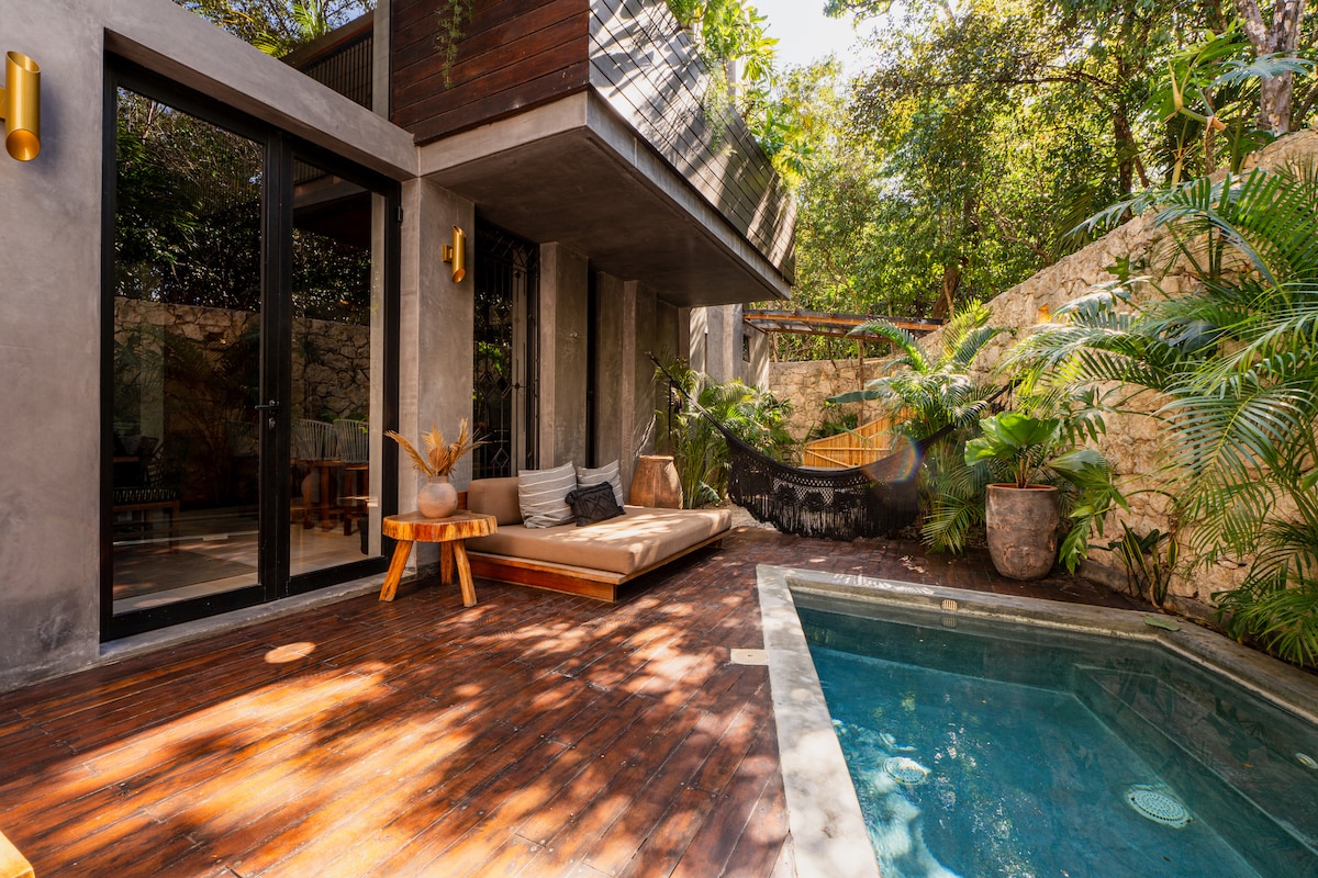 Sumérgete en el corazón de la selva maya en nuestra moderna y ecológica villa, completa con un cenote privado, impresionantes encuentros con vida silvestre y una piscina en la azotea perfecta para contemplar las estrellas. Diseñado con ventanas del suelo al techo, este sereno refugio ofrece una conexión única con la naturaleza sin sacrificar las comodidades modernas. Los huéspedes describen repetidamente su estancia como «mágica», «inolvidable» y «más allá de las expectativas».
