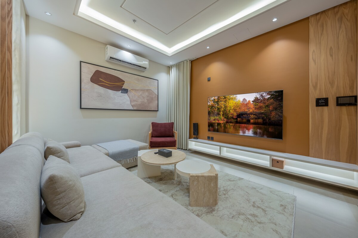 Una escapada de entretenimiento con estilo en Hittin, Riad. Este moderno apartamento cuenta con una sala de juegos al aire libre con billar, hockey de aire y tenis de mesa, televisión grande y fogata. Perfecto para momentos llenos de diversión con amigos o familiares. Los interiores cálidos, la ropa de cama cómoda y una ubicación privilegiada cerca de Boulevard Riyadh City lo convierten en un lugar ideal para relajarse, jugar y disfrutar de una estancia inolvidable en uno de los distritos más vibrantes de Riad.
