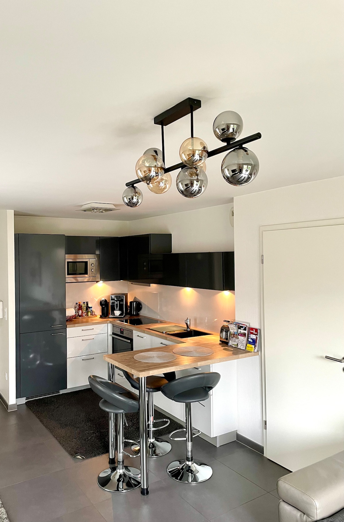 Frente al Parlamento Europeo, en una nueva residencia de lujo en el distrito de negocios Archipel, ponemos a su disposición un gran apartamento de 2 habitaciones amueblado y equipado con cuidado. Situado en el séptimo piso, ofrece desde su bonita terraza de 10 m2 orientada al sur, una espléndida vista de Estrasburgo . Aparcamiento gratuito al lado del edificio. ¡Dos tranvías y un autobús le llevan a todas partes y muy rápidamente! (Mercado de Navidad a 11 minutos , estación de tren a 15 minutos). Comercios al pie del edificio.