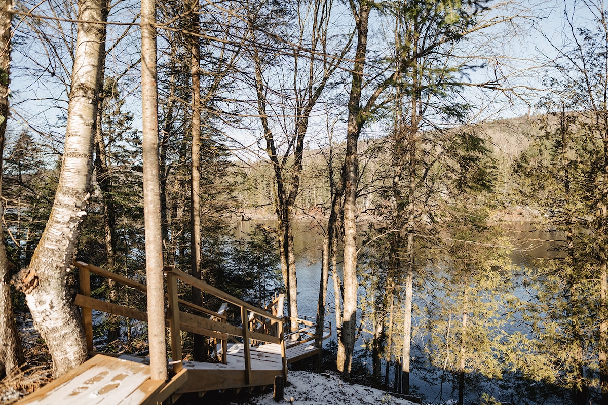 Cerca de un lago, el Parque de la Gatineau es un magnífico chalet en A perfecto para desconectar de la ciudad mientras está idealmente situado para que pueda disfrutar de todo lo que la región turística de Gatineau/Ottawa tiene para ofrecer. Nuestros mini-chalets están equipados para que pueda relajarse con su spa o teletrabajar en su oficina equipada para ello. Nuestras cabañas serán un lugar al que te apresures a volver ya que te sentirás como en casa.