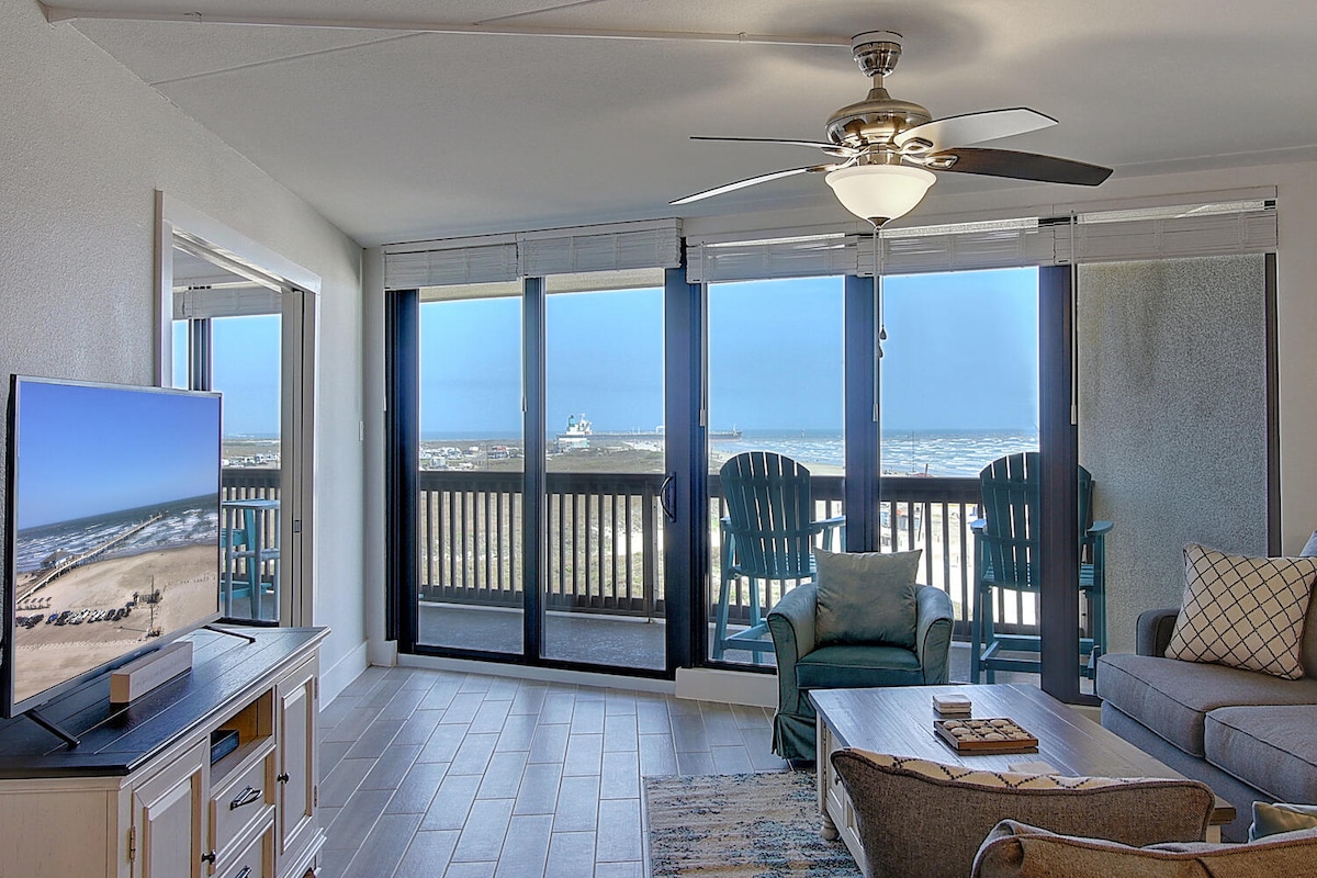 Despiértate sobre el Golfo y termina tus noches bajo la luna de Texas en A View to Sea, organizado por Travel Well Properties. Ubicado en el piso 14 de Mustang Towers, este apartamento de 2 dormitorios y 2 baños con vistas al mar, bellamente decorado, ofrece asientos en primera fila para amaneceres, pelícanos elevados y aguas azules interminables, todo desde su balcón privado. 🌊 Balcón privado en el piso 14 con vistas panorámicas al golfo 🏖️ Piscina estilo resort, jacuzzi y tumbonas 🌅 Paseo marítimo privado a la playa preparada