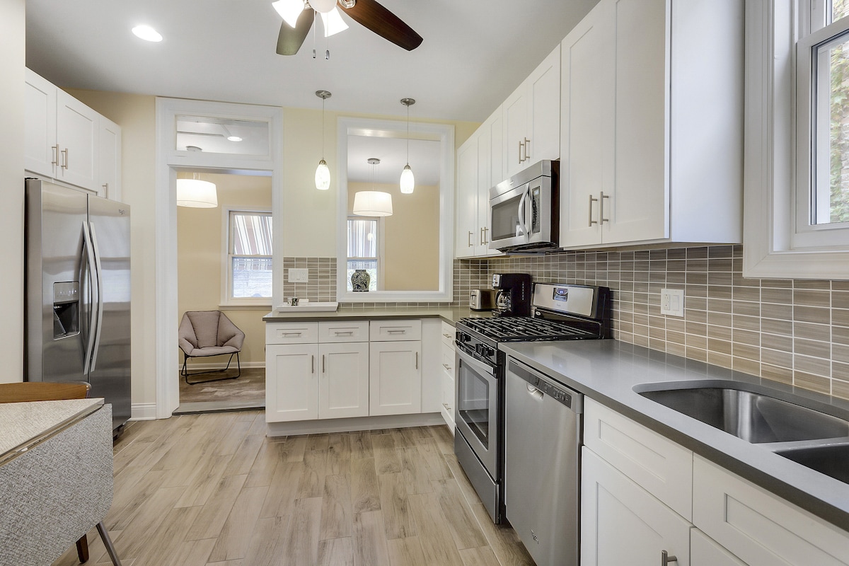 Hogar lejos de casa en un maravilloso barrio de Evanston, conveniente para el centro de la ciudad, el lago Míchigan, Northwestern y más. Disfruta con tu familia de este maravilloso apartamento de dos dormitorios, remodelado magistralmente, con todas las comodidades y confort. Aparcamiento privado en la calle. Actualizaciones recientes: nueva cama tamaño king, TV de alta definición de 65 pulgadas, lavadora y secadora, y mucho más. Seguimos el protocolo de la EPA/CDC y nos preparamos para tu estancia con una limpieza y desinfección intensivas.