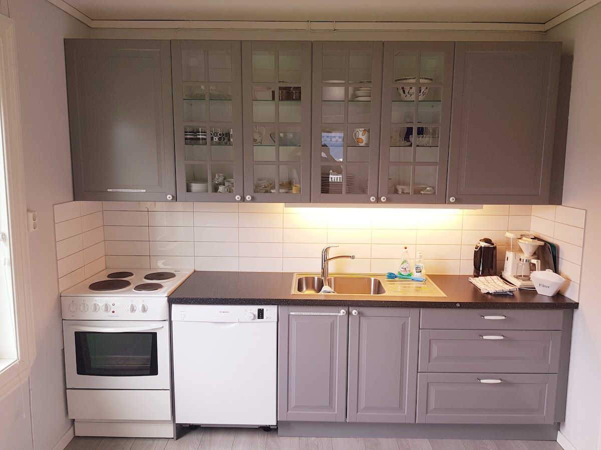 Acogedor apartamento para dos personas con hermosas vistas al fiordo se alquila por un mínimo de 2 días. El apartamento está equipado con dos camas de 90x200 que se pueden configurar juntas para camas dobles, muebles de exterior, estufa con inducción y horno, nevera con congelador, cafetera, cafetera, hervidor de agua y varios cubiertos/otros equipos de cocina (no lavavajillas), internet, canales de parabola, ducha/inodoro, calefacción, suelo radiante en suelos en todo el apartamento. El apartamento está ubicado en nuestro huerto de manzanas en un entorno rural.