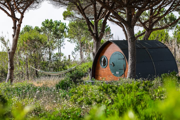 Tranquilo y romántico hobbit pod en la preciosa costa
