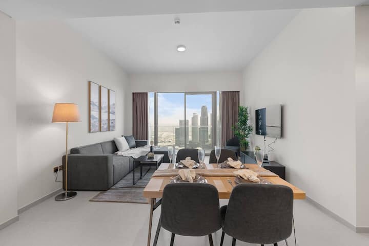 Luxe 2BR con vistas a Burj y Fountain | Downtown Bliss