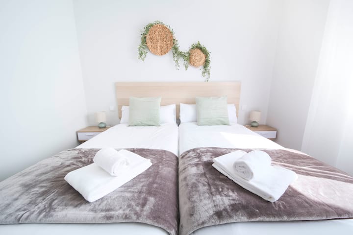 • Habitaciones: un dormitorio con cama de 150cmx200cm, un dormitorio de dos camas de 90cm y un dormitorio con cama de 90 cm y zona de trabajo con conexión Ethernet. Todos ellos muy luminosos, cuentan con ropa de cama, almohadas, edredones, mantas adicionales, toallas y armarios.