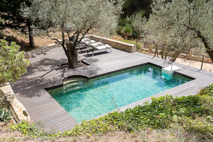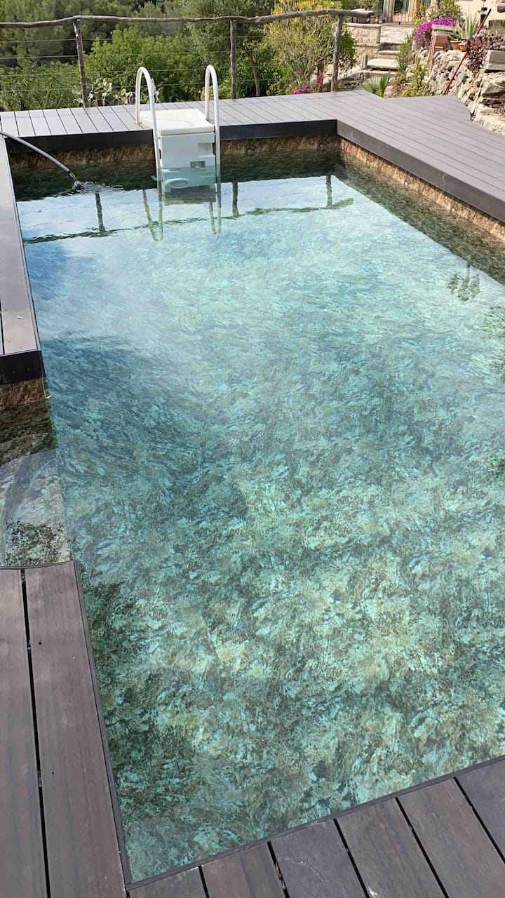 Este es uno de los pocos alojamientos de la zona con piscina.