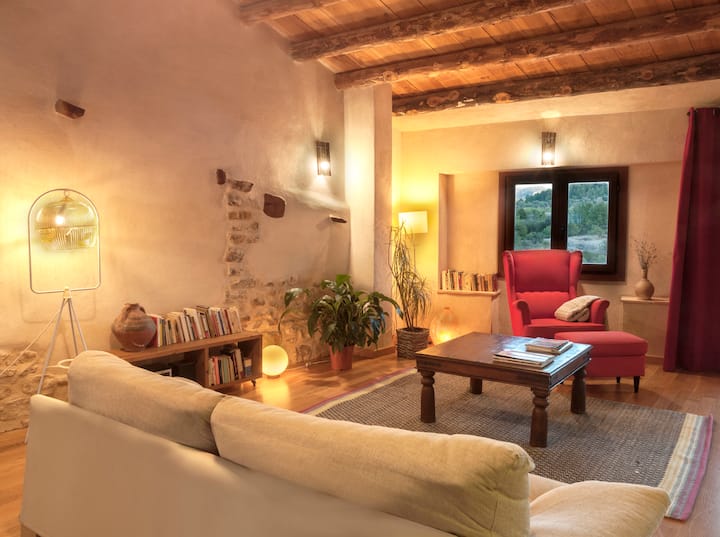 Somos Jacobo y Javi, nos hemos decidido a hospedar un precioso loft de turismo rural en Ráfales/ Ràfels, un pueblecito en plena naturaleza de la comarca del Matarraña de Teruel: Lo Taller de Casa Juano
