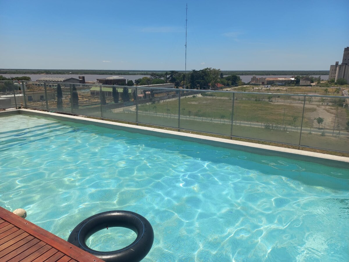 Monoambiente ubicado a media cuadra de la Costanera. Es una construcción moderna, elegante y luminosa. El edificio cuenta con una piscina, ubicada en el último piso, con una vista inmejorable del Río Parana y de la Ciudad de Rosario. Además, cuenta con gimnasio, laundry, work zone, quichos con parrilla, espacios verdes y seguridad 24 hs. Esta ubicado en el corazon de Puerto Norte, nueva zona residencial y gastronomica de la Ciudad.