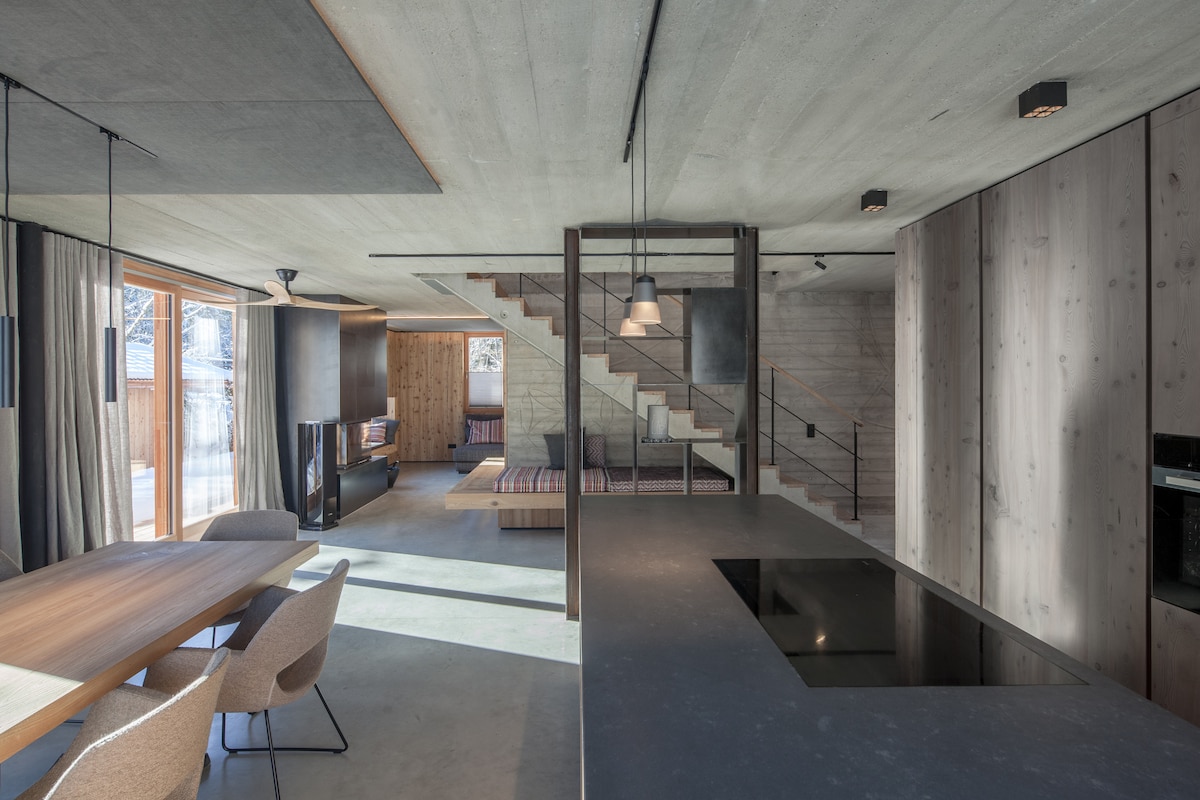 El apartamento de estilo moderno se encuentra en la planta baja de nuestra pequeña casa unifamiliar y emana la hospitalidad típica del Tirol. La hermosa vista desde la sala de estar y la terraza a los campos de Achenkirch, directamente a las montañas Rofan y a la cima Seekarspitze, ayuda a dejar atrás el estrés diario y le invita a disfrutar y relajarse. El lago Achensee, el más grande del Tirol, se encuentra a 2 km, la estación de esquí está a poca distancia a pie y el campo de golf está a 1 km.